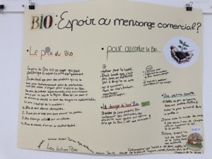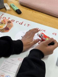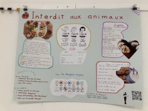 L’objectif de la journée était de créer une affiche, incluant des textes, des dessins, des images et une recette de cuisine. Les élèves ont même participé à un atelier incluant le rangement d’un frigo, le tri des déchets, un quiz sur la nourriture, une dégustation de lait végétaux et un calcul des calories.