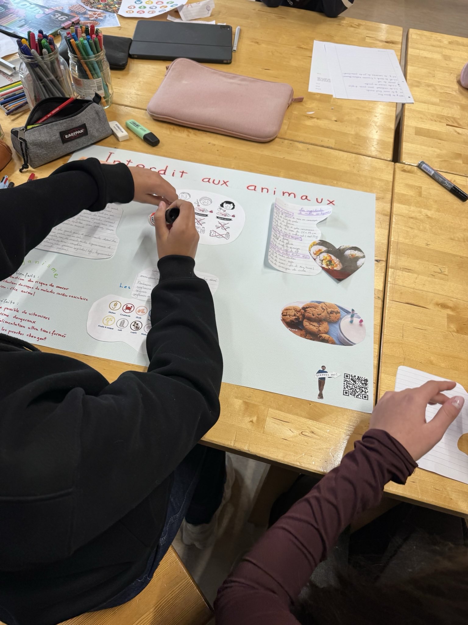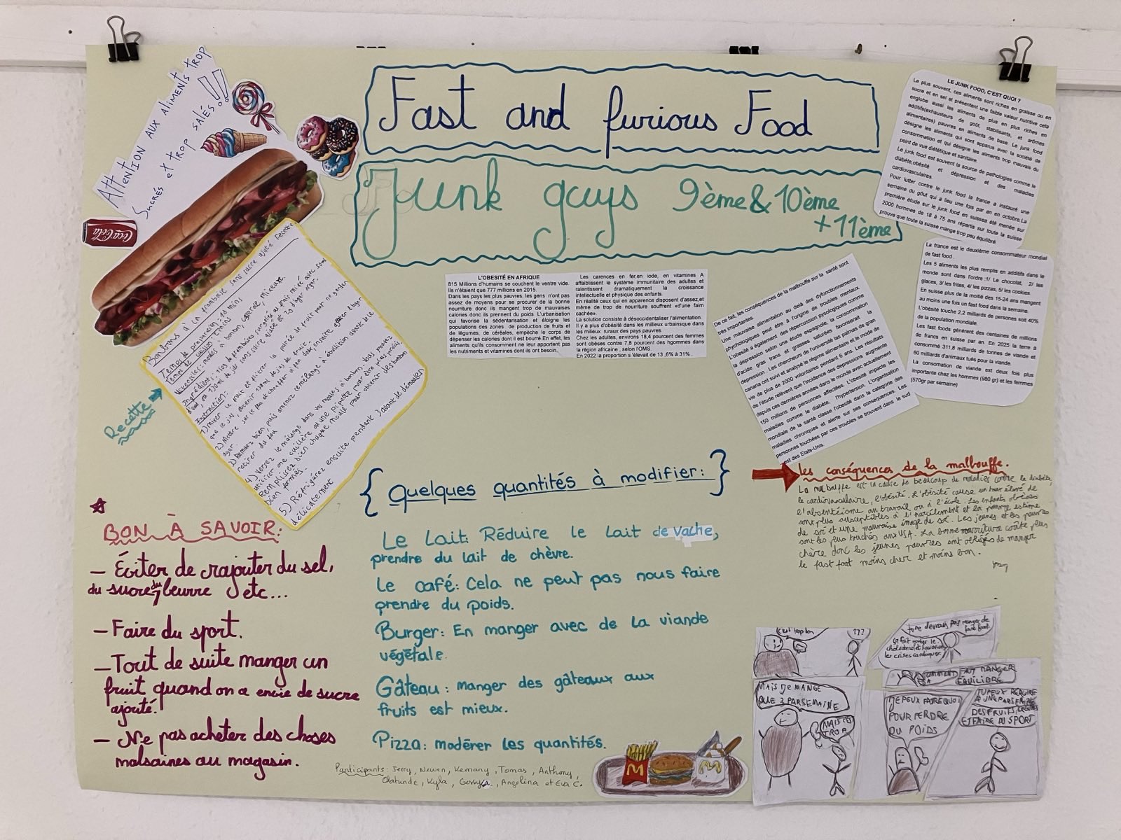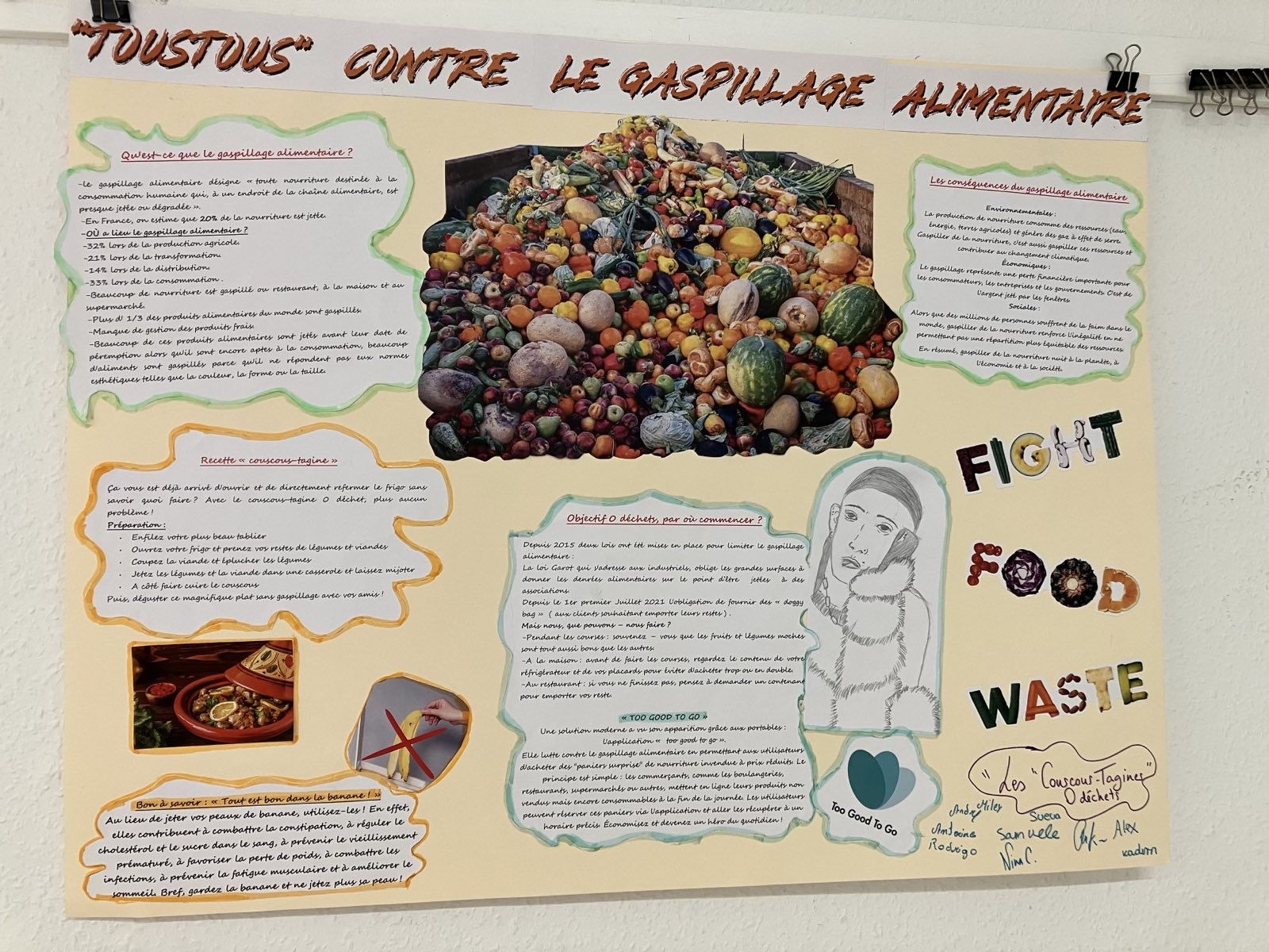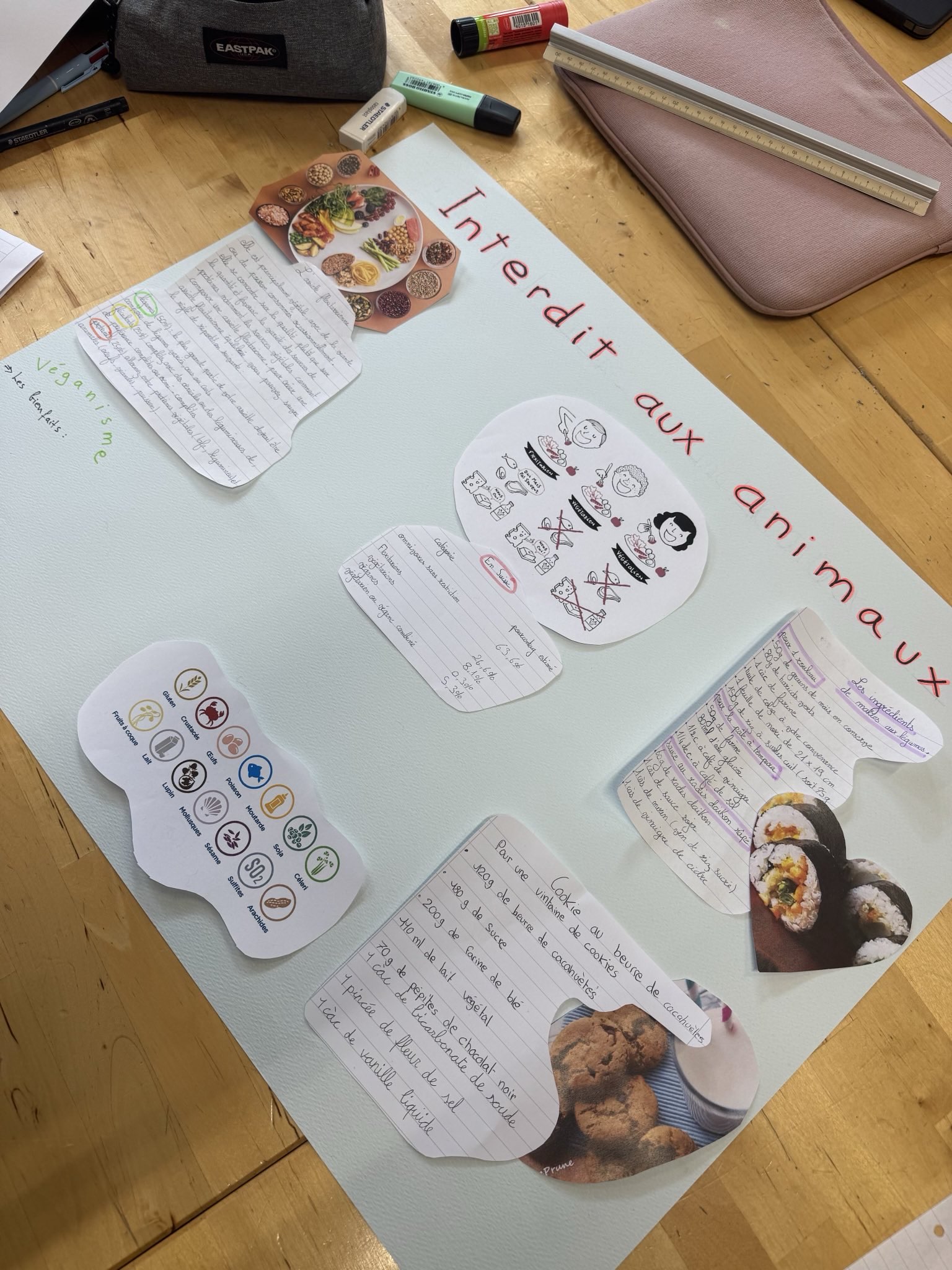 L’objectif de la journée était de créer une affiche, incluant des textes, des dessins, des images et une recette de cuisine. Les élèves ont même participé à un atelier incluant le rangement d’un frigo, le tri des déchets, un quiz sur la nourriture, une dégustation de lait végétaux et un calcul des calories.