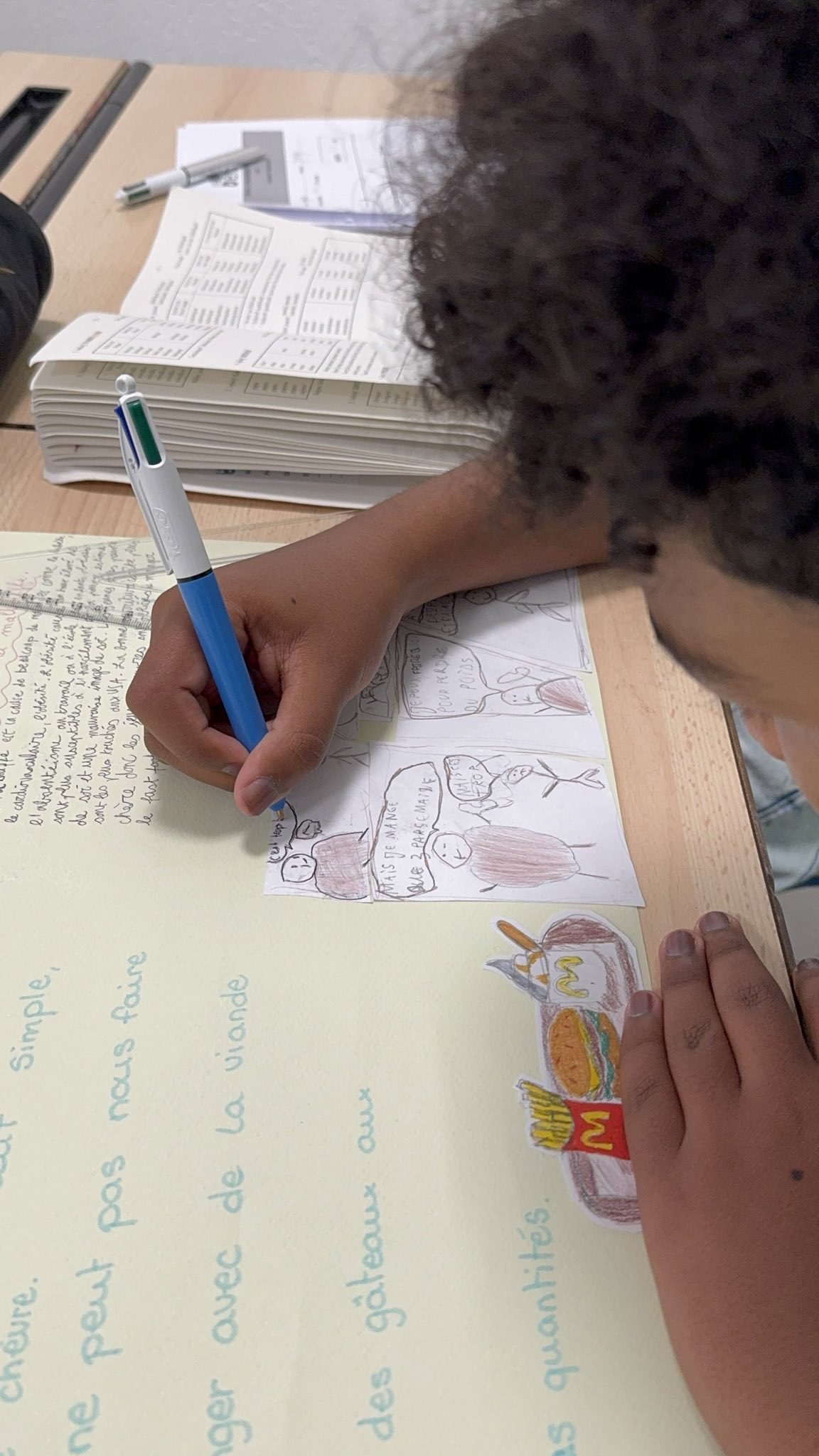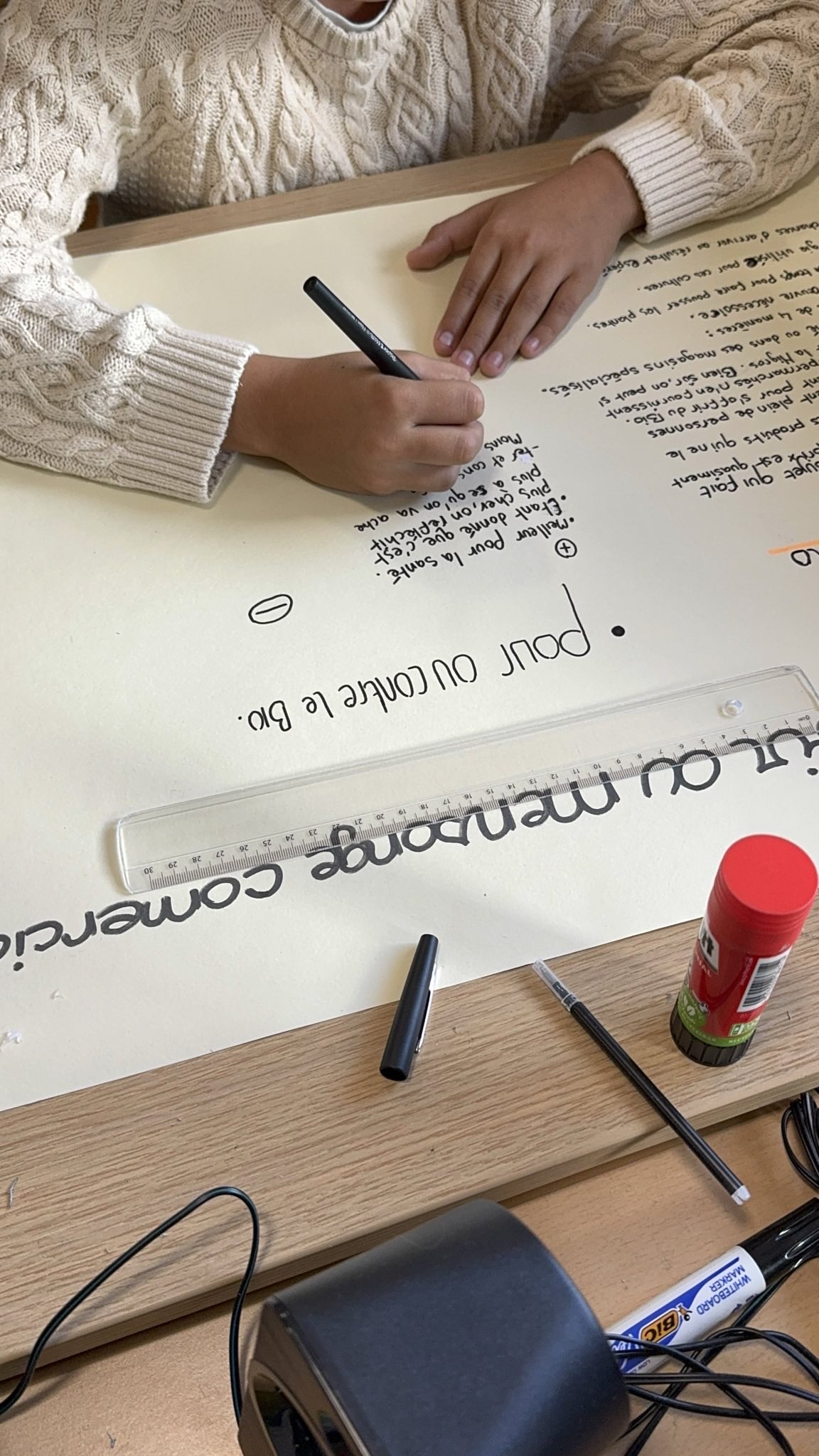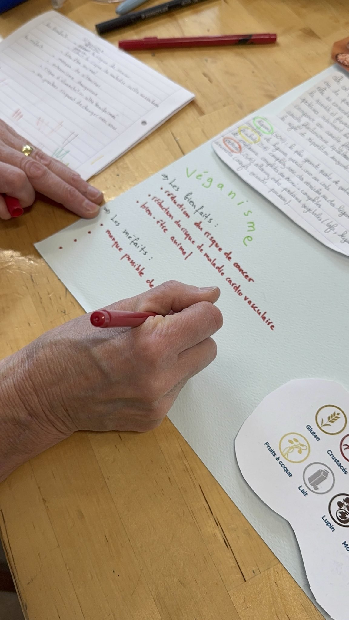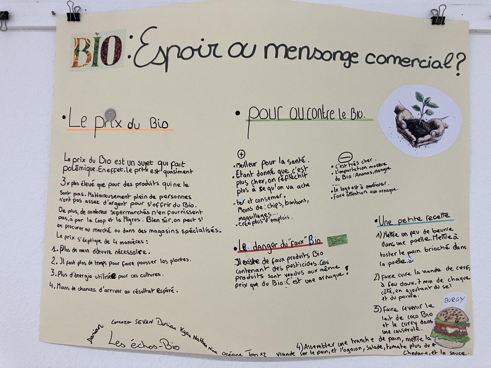 L’objectif de la journée était de créer une affiche, incluant des textes, des dessins, des images et une recette de cuisine. Les élèves ont même participé à un atelier incluant le rangement d’un frigo, le tri des déchets, un quiz sur la nourriture, une dégustation de lait végétaux et un calcul des calories.